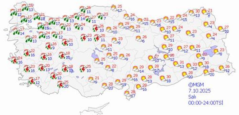 Çelik’e göre, Pazartesi günü yurt genelinde genellikle yağışsız ve mevsim normallerinin üzerinde sıcaklık hakim olacak. Ancak yarın akşam saatlerinden itibaren batı bölgelerden başlayarak çoğu bölgenin serin ve yağışlı bir havanın etkisi altına gireceği belirtildi.